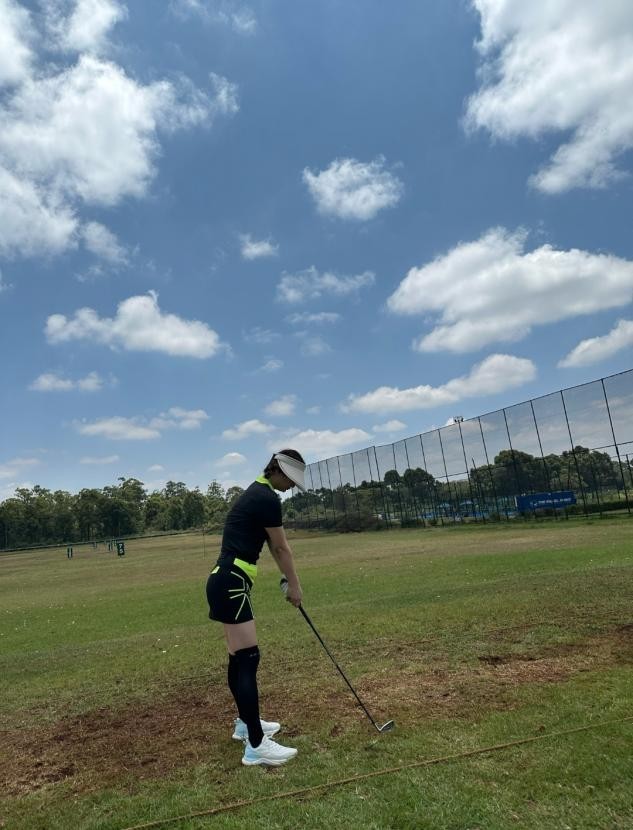 (周末在高尔夫球场练球)