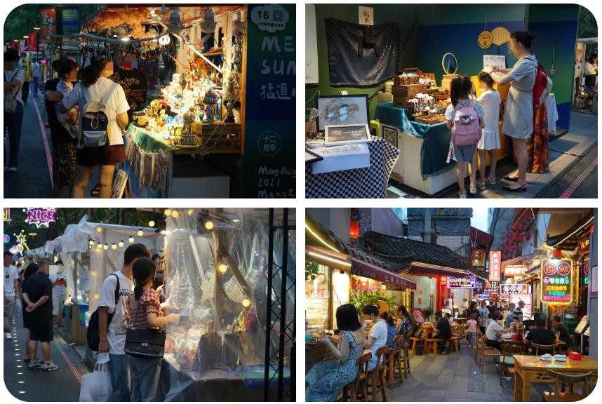 有坐在路边品尝着烧烤、火锅、串串、钵钵鸡、小龙虾等一众美味的吃货们;有约上三五好友“混迹”live house和酒吧,随着音乐舞动,释放自我的年轻人......