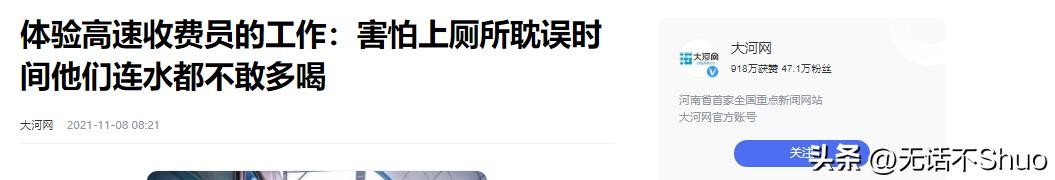 原文登载于大河网 2021年11月8日关于体验高速收费员的工作:害怕上厕所耽误时间他们连水都不敢多喝