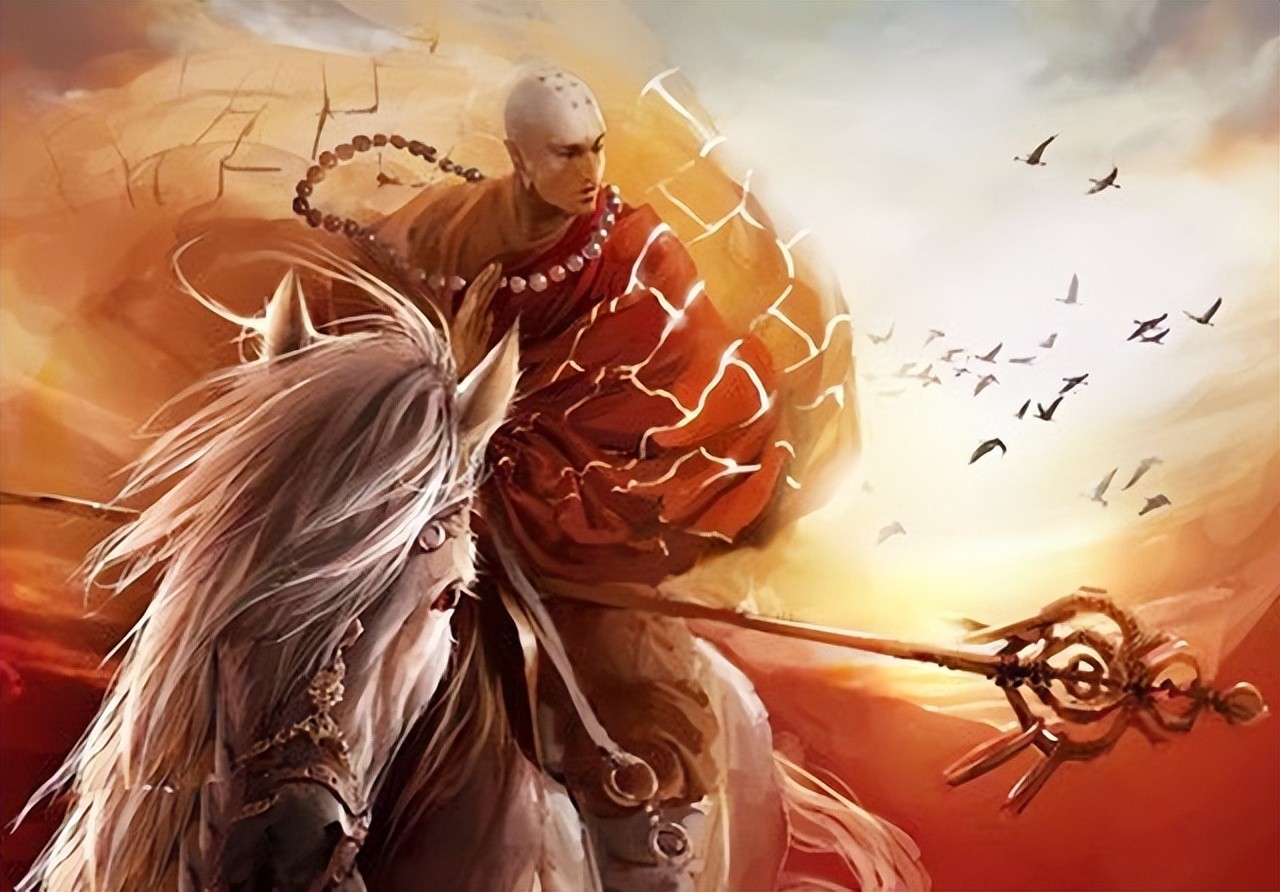 唐僧披挂整齐,在佛祖的叮嘱声中,带着普度众生的使命出发了。