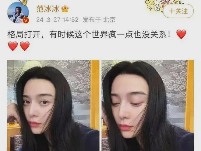 只见她在社交平台上发布了两张自拍照,配文称 :格局打开,有时候这个世界疯一点也没关系!