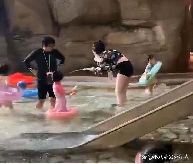 这次二人带着两个小宝宝出现在了杭州某水上乐园。
