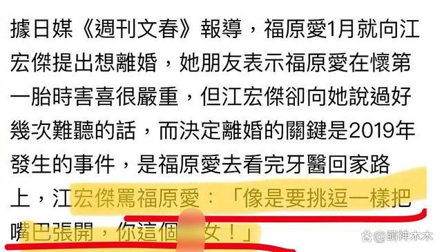 其实早在两人离婚时,日媒就报道过男方语言暴力的相关内容。称当时福原爱非常痛苦,每天都在哭,江宏杰还说福原爱破坏家里气氛,福原爱怀孕后不让吃东西,怕对方变胖 ,批评福原爱家务打扫不干净,连婆婆都形容她是能下蛋的鸡。