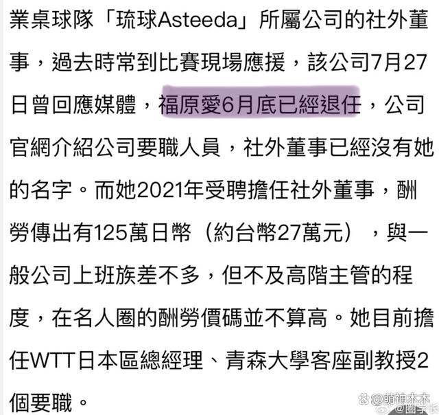 也因为江宏杰的这一波操作,福原爱再次被推到风口浪尖上,她在日本的口碑也跌到谷底,她担任了职业桌球队所属公司社外董事,也已被迫退出。