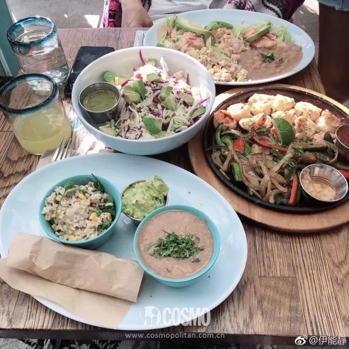 看她的餐单,早餐红薯配藜麦奶或者蛋白粉加黑芝麻,午餐一大盘自制初榨橄榄油搭配萵苣、芦笋、几个蛋白、牛油果。或是用果汁加入初榨橄榄油,再加一点盐搭配柠檬、油醋也可以。