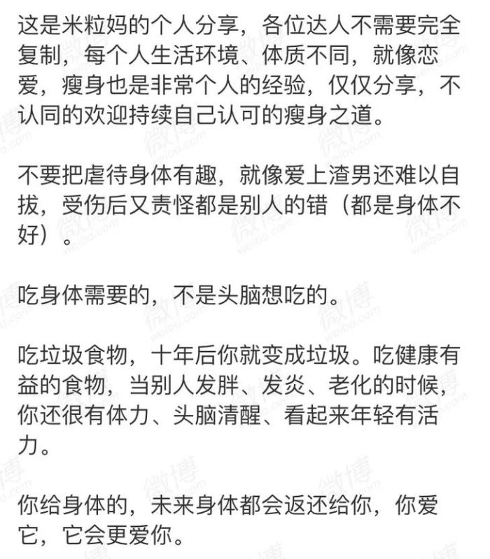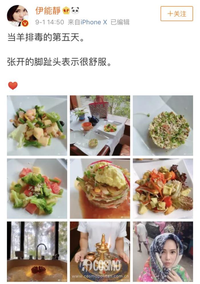 她的长文中所说,“我断了牛、猪、鸡等肉类(这部分请不要模仿,我有营养师指导我),吃海鲜的原型。”