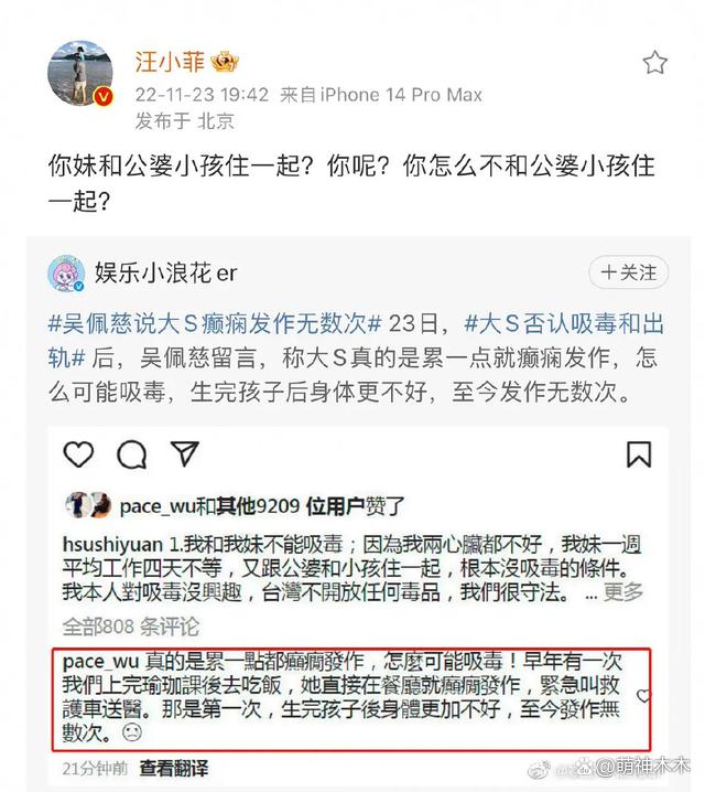 此外,汪小菲也并非如他所说的退场!他在晚间转发大 S 回应的新闻微博,并问:" 你妹跟公婆小孩住一起,你呢?你怎么不和公婆小孩住一起?",不知是嫌弃吴佩慈多管闲事,曝光大 S 癫痫病史,还是质问大 S 为何不跟公婆住。总之发完之后又秒删,意味不明。而他原定于 7 点的直播活动,也缺席了 。