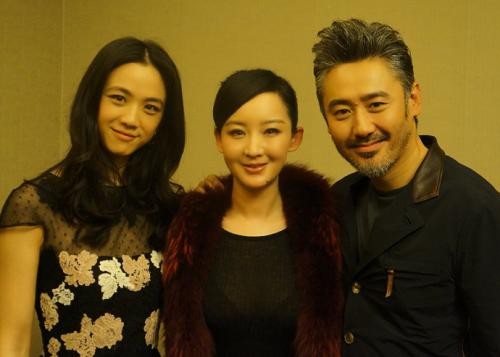 图为买红妹与汤唯、吴秀波合照