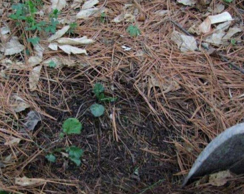 在收集松针土时,只要松树下表面呈黑褐色的土壤,不要挖到新鲜土层的土壤。