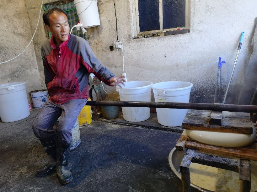 二姨二姨夫朋友家的儿子一个人的豆腐制作坊