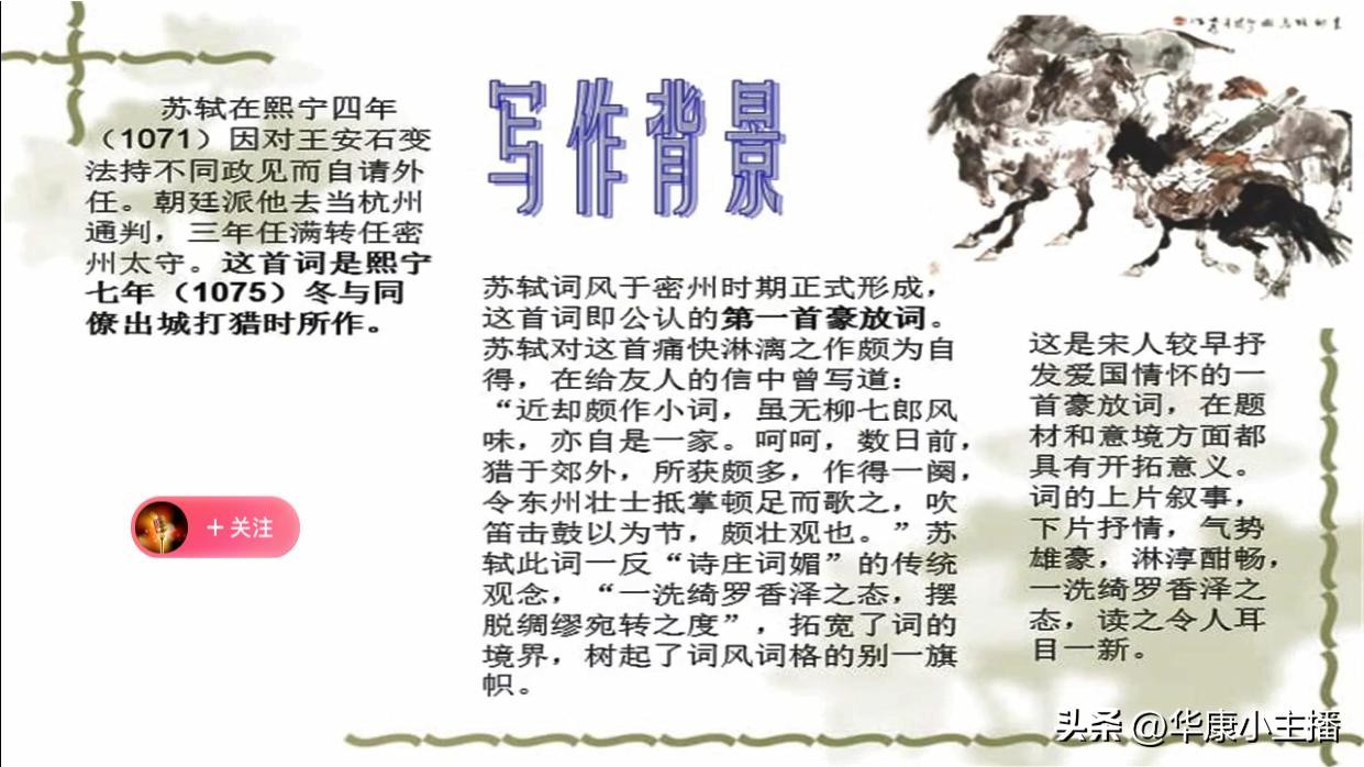 初中必背文言文:苏轼《江城子·密州出猎》原译文赏析 诵读:康爸
