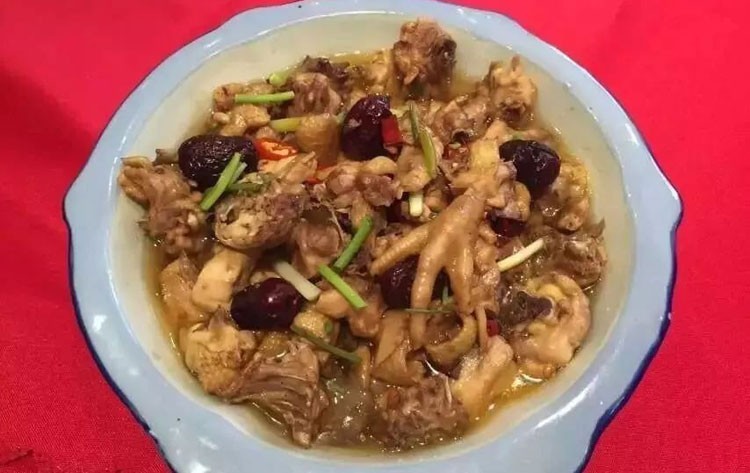 这道菜在弋阳一带流传甚广。地道的特制豆豉清蒸母鸡,将鸡肉中的鲜美汁水与各色调料融合,从而形成一道佳肴。