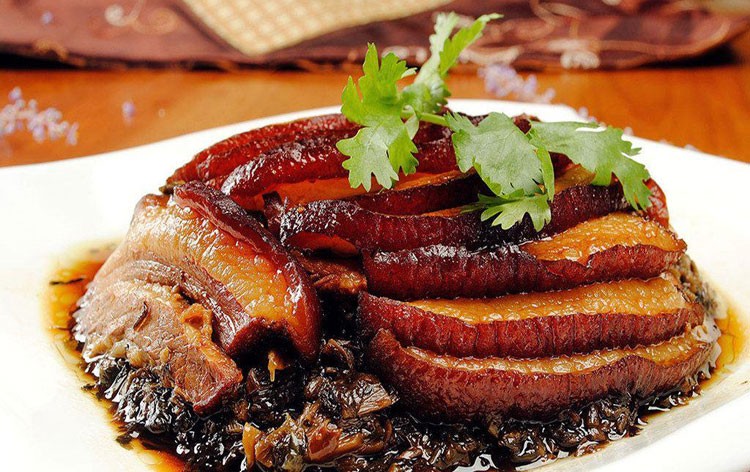 弋阳扣肉,又名“经国扣肉”,因其做法由蒋经国手下厨师所传。上好五花肉佐以梅干菜、白糖、味精等调料蒸熟,倒扣在盘中就成了。
