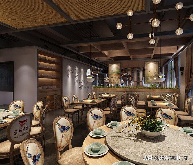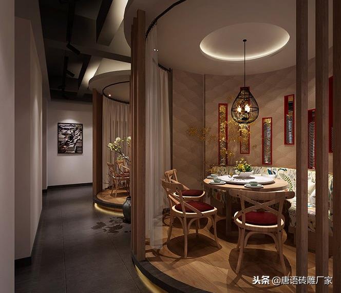 1、特色中餐厅设计餐台:中式餐厅对于餐台的选择相对比较随意、融洽,不比西式餐台,因此,中式餐厅一般都是选择正方形或圆形餐台,而且不会一味的追求大,至于高度方面,餐桌高度一般在70—75厘米之间。