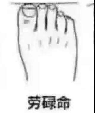 拇趾、二趾和三趾一样长,后两趾短【劳碌命】