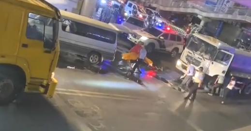 一则现场的行车记录仪显示,9 月 9 日 21 时 43 分许,在航空大道与民族路交界口,一辆车身上印有 " 洒水车 " 字样的大车从对向直行车道驶来,此时左侧道路上正有一批两轮车准备驶向对面。在即将碰撞之际,该洒水车转弯避开,但疑因车速较快有些失控,车辆险些侧翻。两轮车纷纷躲避,其中有一辆左转的两轮车被撞翻,并被压至洒水车车头下方顶行数米。后续有现场视频显示,相关部门均赶至现场处理,被撞者疑已遇难。