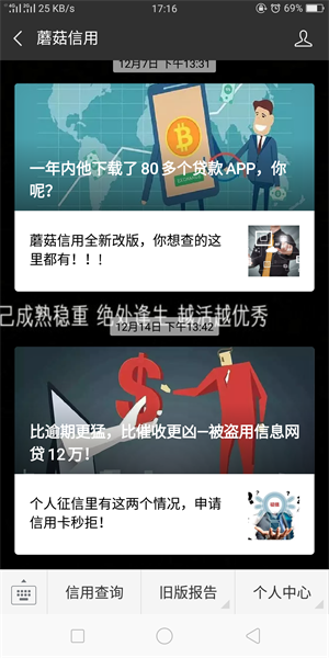为此小编专门亲身暗访了一家公司,据小编了解到一般这类公司的意向客户都是通过某平台购买有意向客户的详细资料然后再通过电话告知可以下款而且利息很低的方式诱骗到公司,刚进公司的时候就会有有人带着你到一个只有你们两个人的房间里然后装模做样的询问你一些个人问题,以及会通过一个叫蘑菇信用的公众号,利用大数据查询平台来看你是否可以进行网络贷款