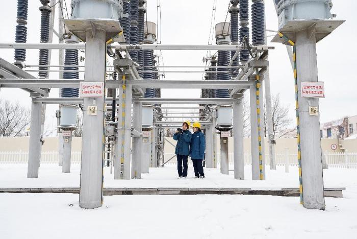 2月5日,大雪过后,国网青岛供电公司员工加强对220千伏市中站室外设备的巡视。梁青摄