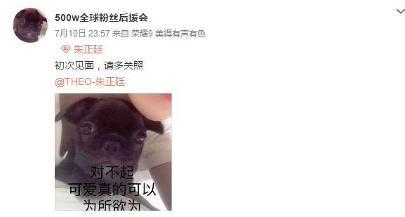 朱正廷三次晒狗,粉丝为“狗”建立后援团,强行取名“五百万”