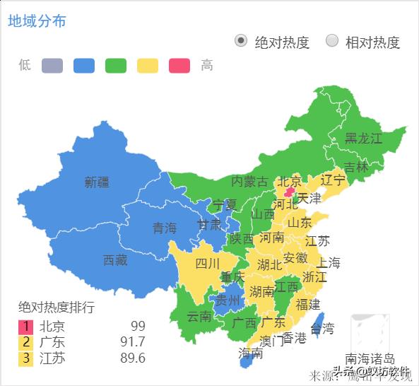 从鹰击早发现的地域热度图可见,全国大部分地区的网民对该话题都很关注,尤其是北京、广东、江苏的讨论热度排行更是前三。根据媒体公开报道,“天价彩礼”现象不仅屡现于甘肃、宁夏、陕西等西北偏远山区,并且在河北、河南等地亦不鲜见,所以这些地方的网友对于此事的关注热度也较高。
