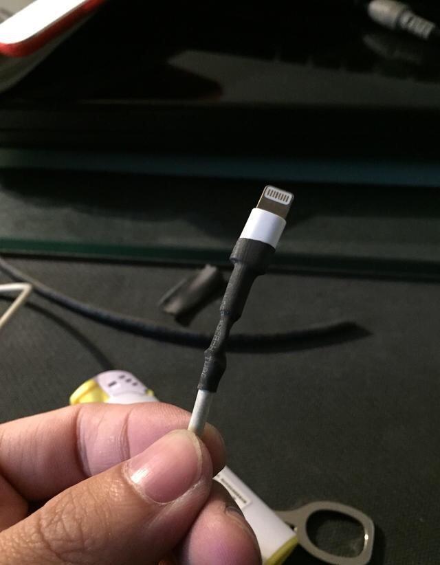 苹果数据线确实质量不好,特别是设备端容易折损,折损后会露出屏蔽网和线,虽然不影响使用,但是看着太揪心,怎么办呢?