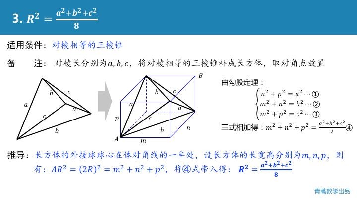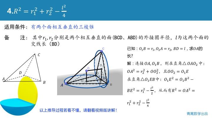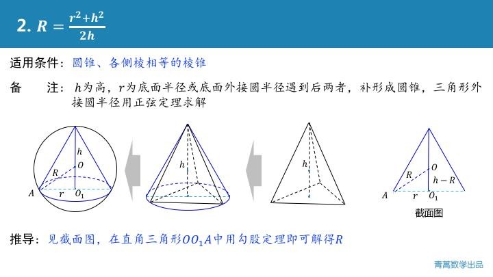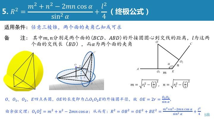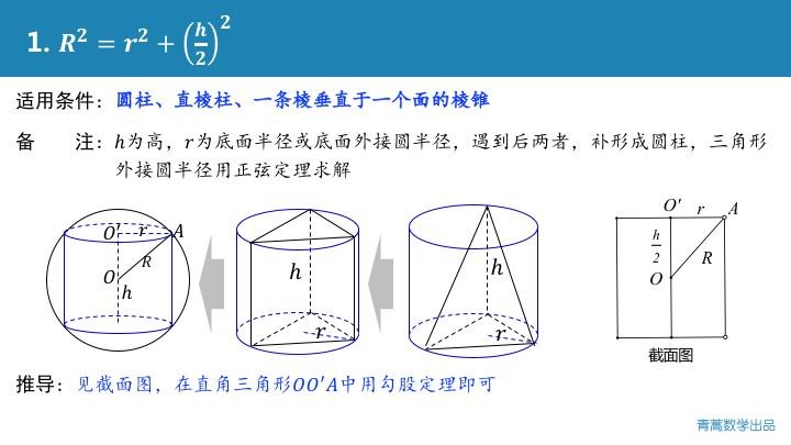 为了避免大家在考场现找思路,进行复杂的运算,宋老师归纳了五个万能的公式,几乎能解决大部分的外接球问题!