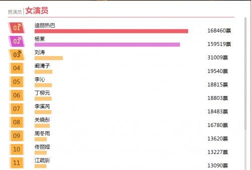 目前的刚进行第二轮投票的金鹰女神榜单上,我们可以清晰看到迪丽热巴和杨紫两人遥遥领先,相信金鹰女神将在两人之间诞生。想要为两人投票该怎么投呢?下面请看: