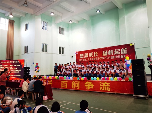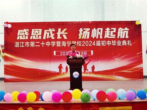 2024年7月3日,湛江第二十中学与海宁学校在湛江第二十中学北校区体育馆共同迎来了2024届初中毕业典礼,以“感恩成长,扬帆起航”为主题,为即将踏上新征途的学子们送上了最真挚的祝福与期许。