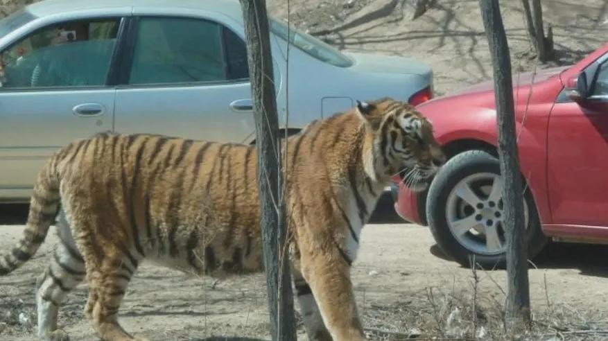 2016年7月23日,在八达岭野生动物世界的东北虎园区内,几只凶猛的东北虎正在趴在平台上晒太阳。这时一辆白色的小轿车突然停在了道路中间,一个女人从车上走了下来。女人名叫赵菁,今天正好孩子放假,一家三口带着赵菁的母亲到动物园来看老虎。本来是高高兴兴的家庭旅游,但危险总是不约而至。不知在车上发生了什么,赵菁突然打开了车门,在禁止下车的猛兽区下了车。她从副驾驶走到了主驾驶,并倚在车门上说着什么。就在这时,跟在他们后面的红色轿车开始疯狂鸣笛,赵菁回头一看,一只巨大的东北虎猛地冲了出来,一把将她拖到了地上。