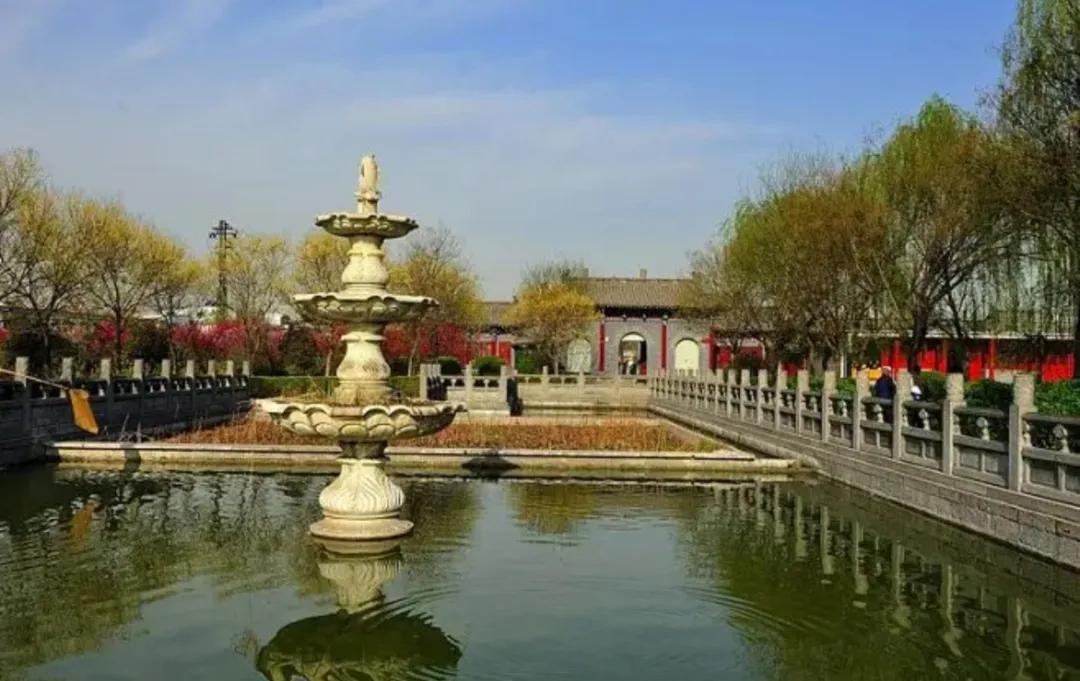 洛阳白马寺是我国创建历史最早的第一座佛教寺院,它历史悠久,久负盛名。如果你到洛阳旅游,白马寺是必选的旅游景点之一。寺院内洪钟长鸣,佛香远溢,古木苍翠,给人一种庄严、肃穆、神圣之感。进入寺门面向道路有一座四柱三间的石牌坊,穿过石牌坊即放生池,放生池上有一座三石拱桥跨池南北,池子周围有石栏环绕,水中可见鱼吮残红,随波游荡;池子左右两侧,绿草茵茵,中心设花地,形成一种风格自然的人间淨土。