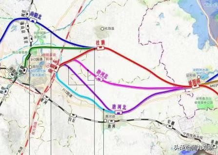 在南阳内部讲,就不是那么妙。首先来说,南阳东站少了一条可以接入的线路,其次,在并线且北端引入的情况下,中短期内,社旗、唐河在近期恐怕就只能有一个高铁站。从曲线半径、线路顺直的角度说,走社旗无疑是最优选,但是这就弃唐河这个百万人口大县于不顾;若从南端接入,唐河的要求满足了,但是影响西段的线路顺直,南阳以西线路会绕着整个南阳城画了一个“U形”大弯。这可能会影响一些长途列车会因为曲线限速的原因,不考虑从南阳地区经过。