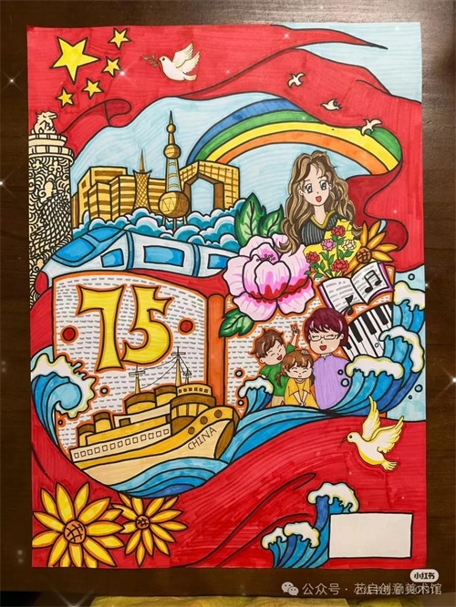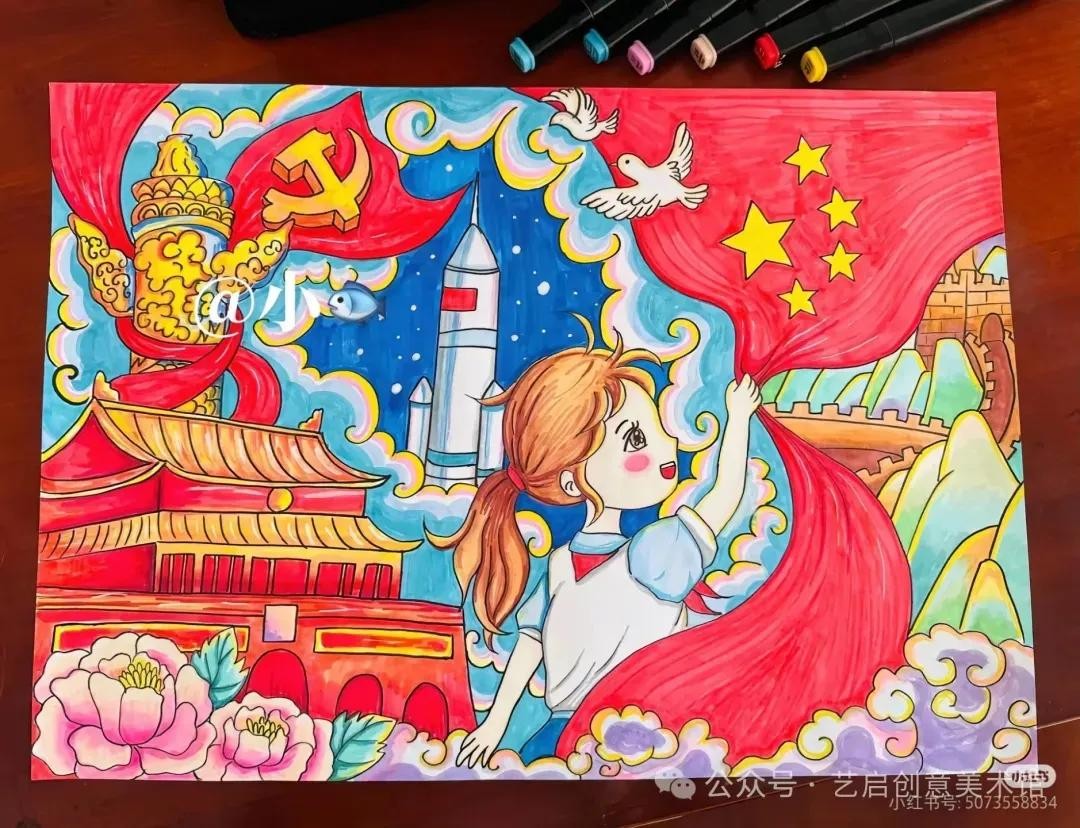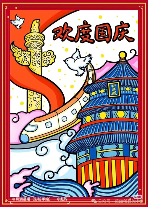 国庆节主题创意绘画参考集,创意满满都是对祖国的爱!