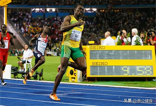 2009年8月17日,在柏林田径世锦赛上,牙买加飞人尤塞恩·博尔特以9秒58的惊人速度遥遥领先,夺得冠军并创造了男子100米新的世界纪录。