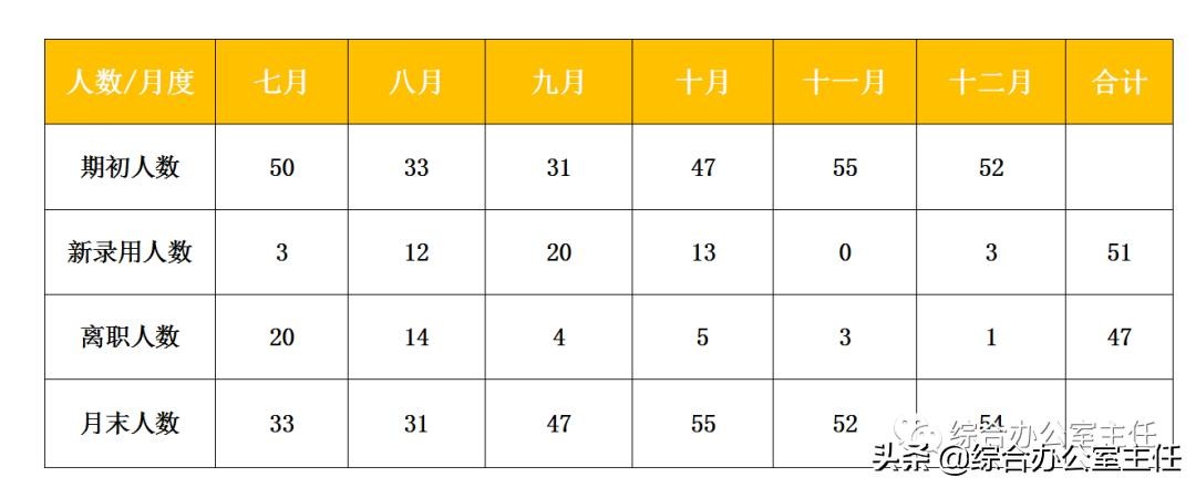 比如A公司2019年后半年新录用、离职人数情况(如图)~