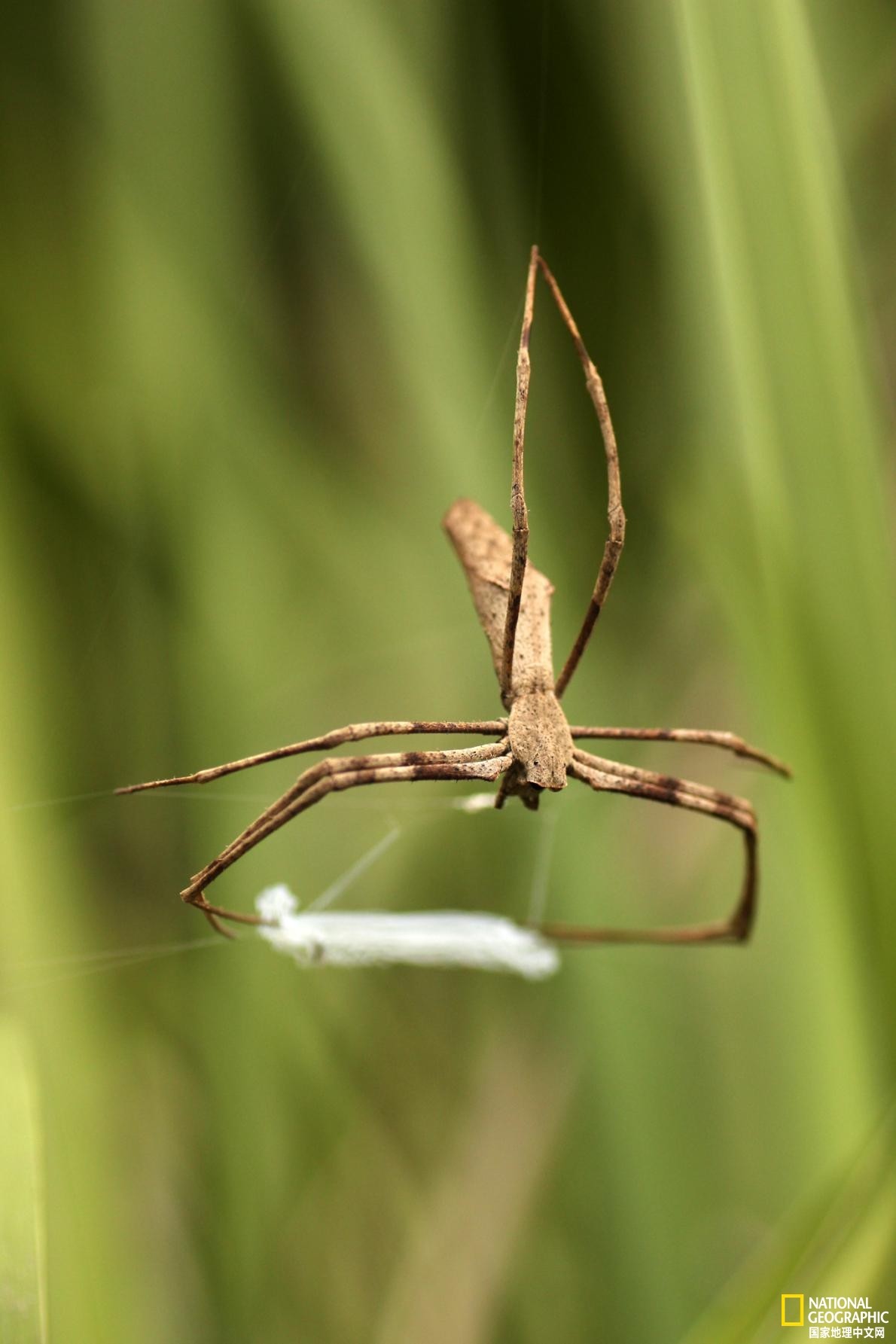 根据这项研究,鬼面蜘蛛能用蛛丝织出一张粘稠的网,然后“急速向后扭转头部”,诱捕飞虫。
