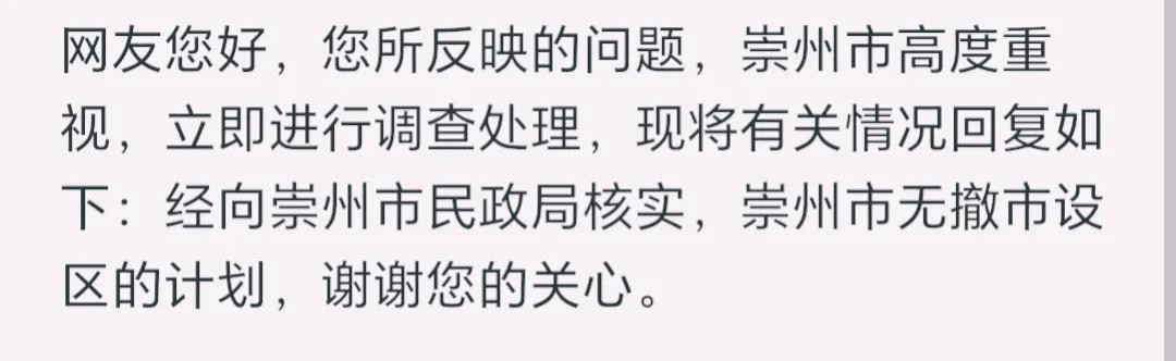 近日,有网友询问了关于崇州市撤市设区进度的相关问题,但在官方回复的信息中却表示崇州并没有撤市设区的计划,也就是说崇州市虽然有撤市设区的想法,但并没有得到实施,短期内实现这一目标的可能性微乎其微。