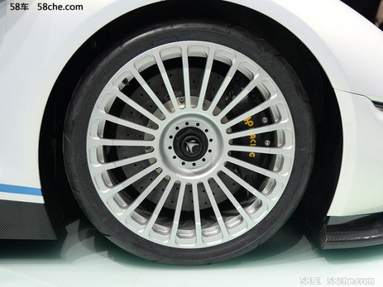 △ 多辐轮圈用在这台超跑身上似乎有些过于严肃,与整体拉风的造型略显不符,内部的刹车套件由AP RACING提供。