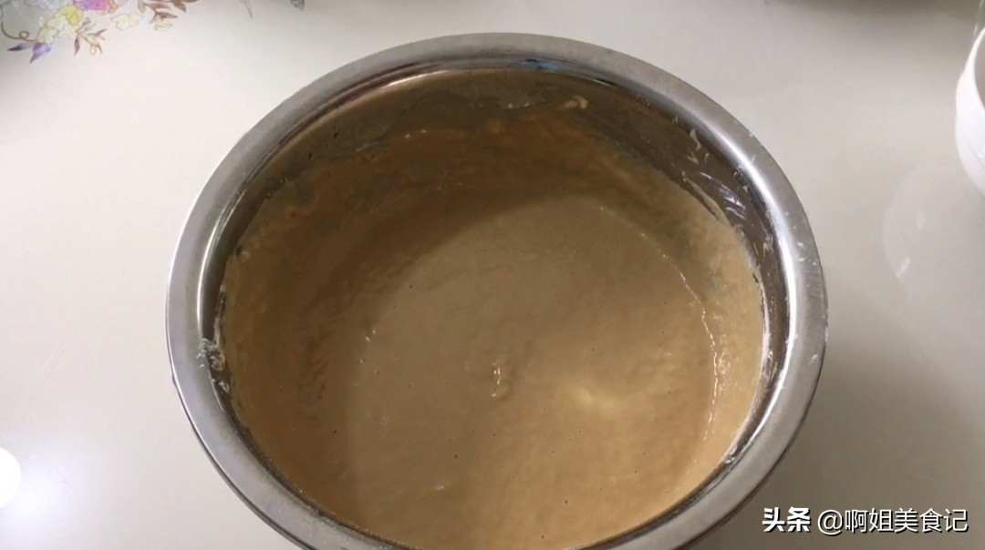 ②搅拌至面糊细腻顺滑无颗粒,盖上盖子醒发一个小时。