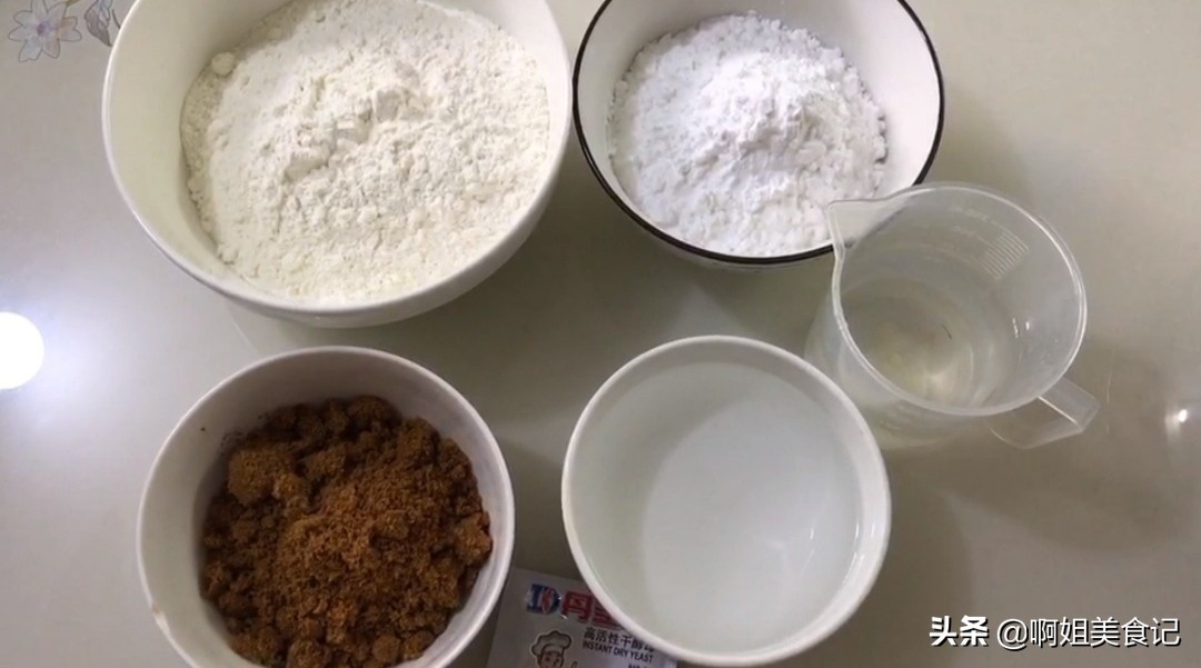 面粉200克,木薯淀粉100克,红糖80克,开水140克,凉水140克,酵母5克