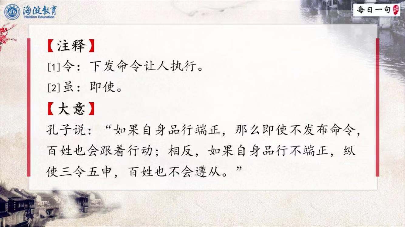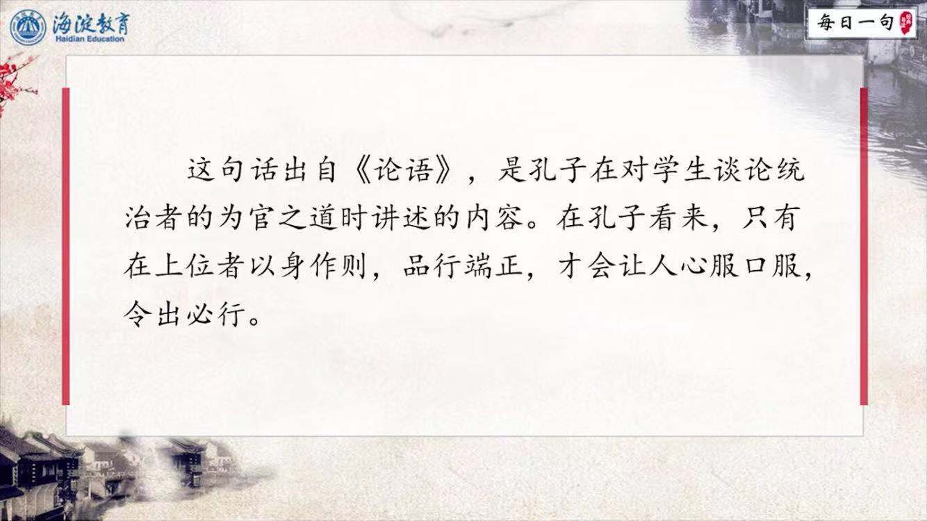 每日一句经典导读第28期 其身正,不令而行;其身不正,虽令不从