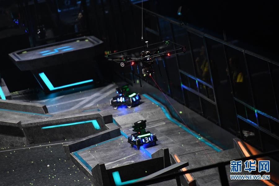 8月11日,东北大学TDT战队的无人机向对手发起进攻。 新华社记者 梁旭 摄