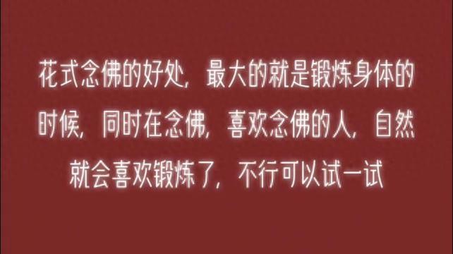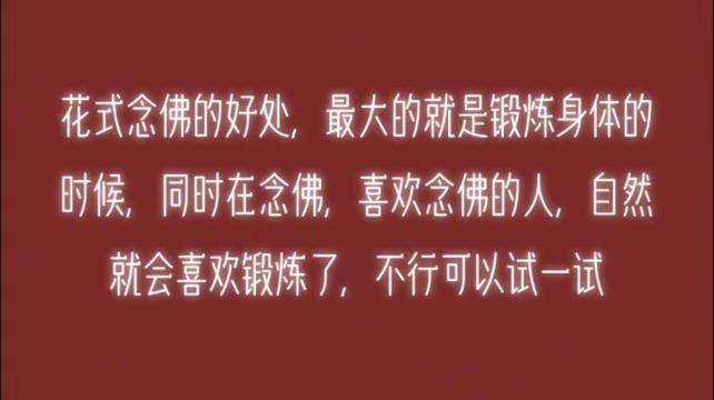 花式念佛的好处,最大的就是锻炼身体的时候,同时在念佛,喜欢念佛的人,自然就会喜欢锻炼了,不行可以试一试。