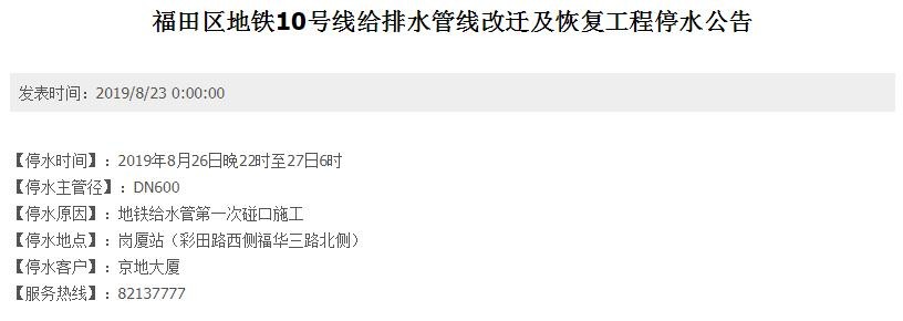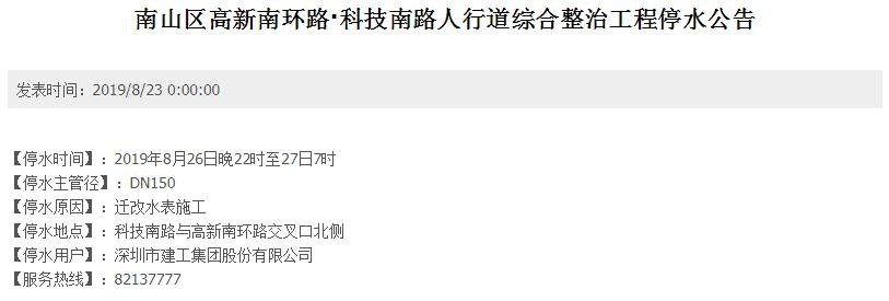 对停水公告,市民朋友如有疑问,可致电水务服务热线82137777。
