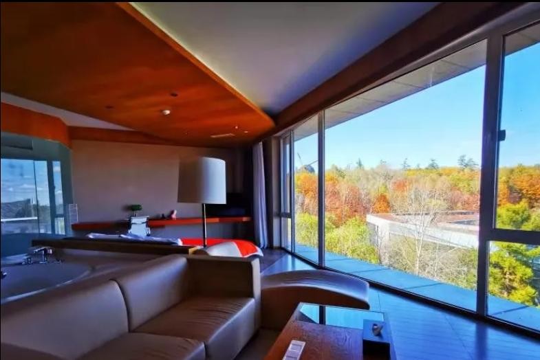 长白山最有名的聚龙温泉群就在皇冠假日旁边,住客都可以无限次浸泡温泉。