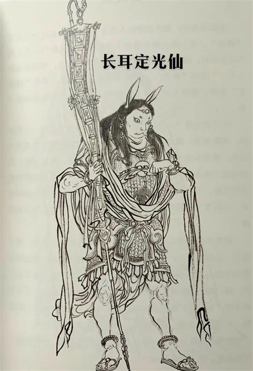 长耳定光仙,原形为一只长耳兔,曾替师父通天教主去阐教下战书。在万仙阵一战中,乌云仙被西方教收服、虬首、灵牙、金光三仙被阐教三力士收为坐骑,龟灵圣母也战死,通天教主无人可用,便将至宝六魂幡交给长耳定光仙保管。六魂幡为诛仙恶幡,上书接引道人、准提道人、老子、元始天尊、武王姬发、姜子牙六个人的名字,摇动六魂幡可令大罗神仙神魂俱灭。