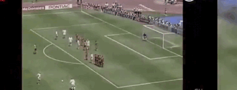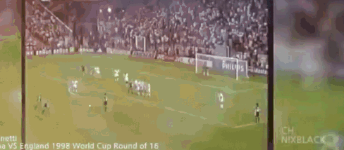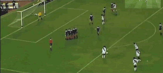 如上动图所示,这是1998年世界杯英格兰与阿根廷队之间的较量,阿根廷队在对方禁区弧顶附近获得了一个间接任意球机会,三名球员站在球前准备开球,一名球员跑向左侧边路压迫对方越位线后退同时吸引对手的防守注意力;另外一名球员站在球前,一动不动,干扰到英格兰对防守球员的防守判断;而留给中路的萨内蒂一个无人盯防的接球空间,萨内蒂停球后转身起左脚直接破门完成得分。