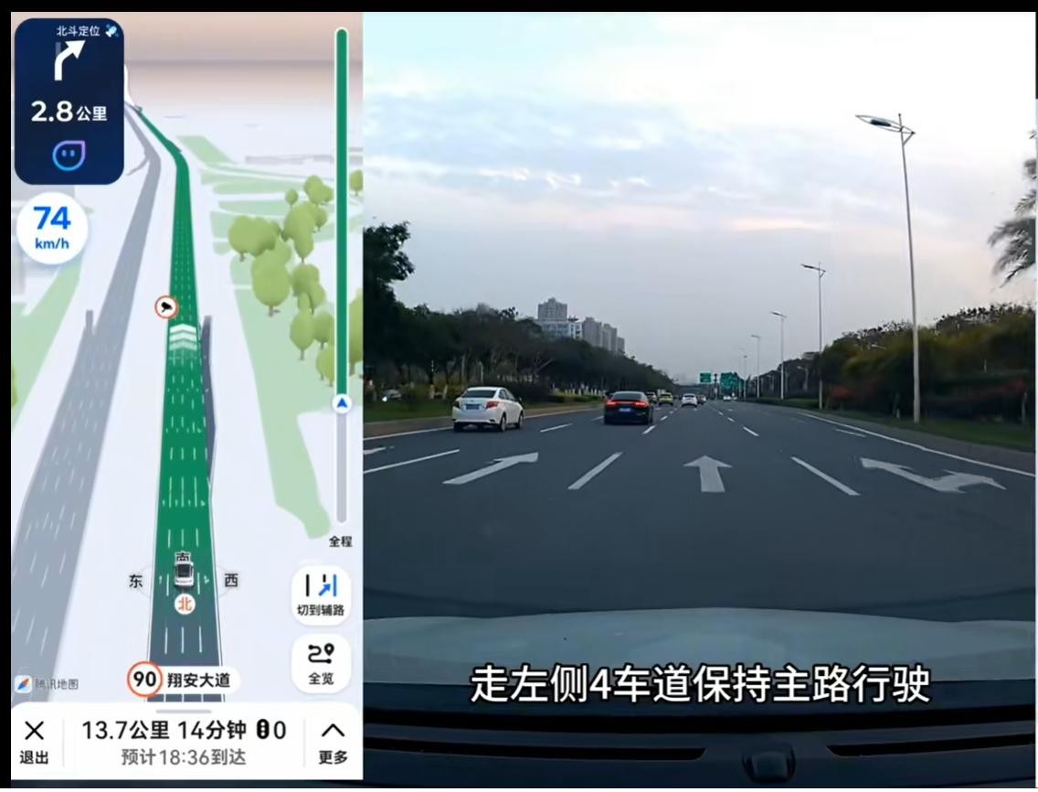 在车道级导航方面,高德地图和百度地图支持的道路数量差不多,而腾讯地图相对较少。在车标所在车道的正确性上,百度和高德时不时会偏离一个车道,甚至出现偏两车道以上的情况,而腾讯地图虽然也会有偏离,但比高德和百度少很多,准确性相对较高。例如在多车道的环路和高速路上,腾讯地图能更准确地显示车辆所在车道,为用户提供更精准的导航指引。