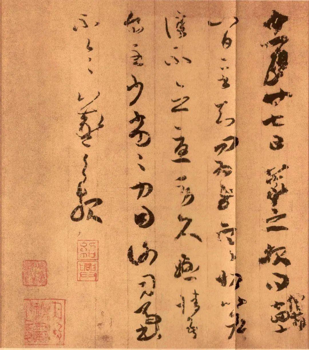 这件作品字形偏于扁,表现草势的曲笔写得细而圆柔,略微不同于索靖的《月仪帖》。王羲之早年的章草,曾经得到庾翼(那时,庾翼还是书坛领袖)“顿还张芝章草旧观”的评价。