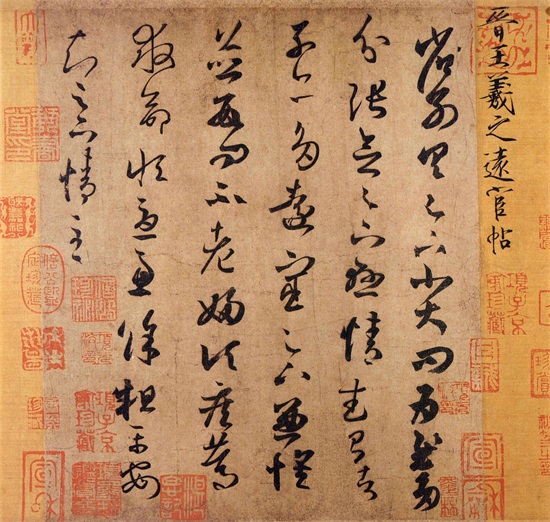 王羲之的“字群结构”中,笔势放逸生奇的品格突现出来了。在这里,笔锋不再是被动地依循每个字的草法结构所设定的路线而运行。仿佛蹈厉赴险,使一些笔画姿态发生了变异的“情节”,也就是说,笔势也具有了舍正生奇的“赋形”功能。