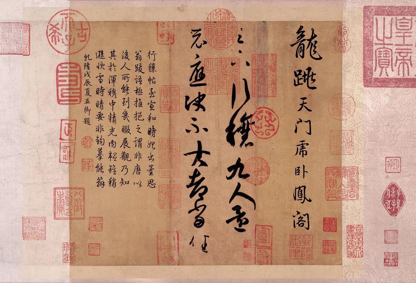 这些作品,是王羲之后期的书迹,笔势起伏跌宕,形态舒卷多状,特别是连笔的映带延绵,表现得十分明确。比如《侍中帖》帖首的“侍中书”三字,笔势贯注而下,仿佛把三个字当作一个字来写: